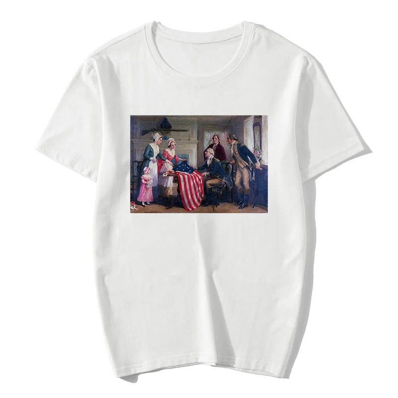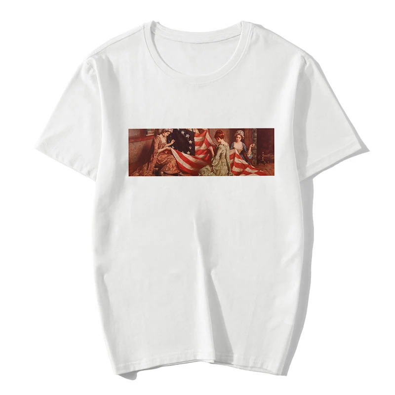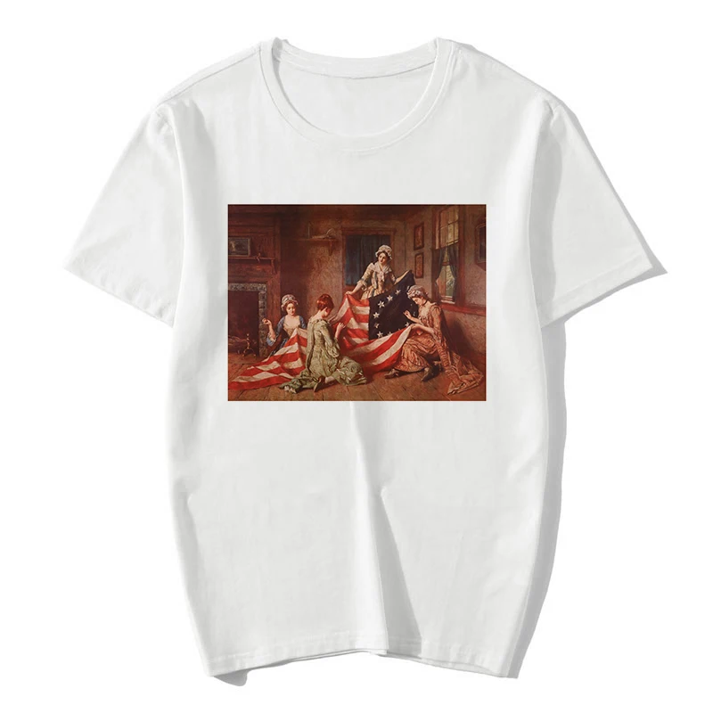 | Betsy Ross Print Pattern Summer Vintage Harajuku T Shirt Women Clothes 80s 90s Aesthetic Top Tees Female |