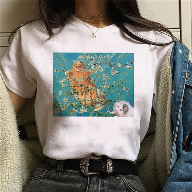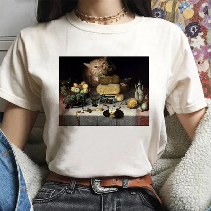 | Cat Shirt Aesthetic Harajuku Clothes Funny Tshirt Spoof Fun Summer Tops Gothic Graphic Tees Vintage LGBT T Shirt Women Clothes |