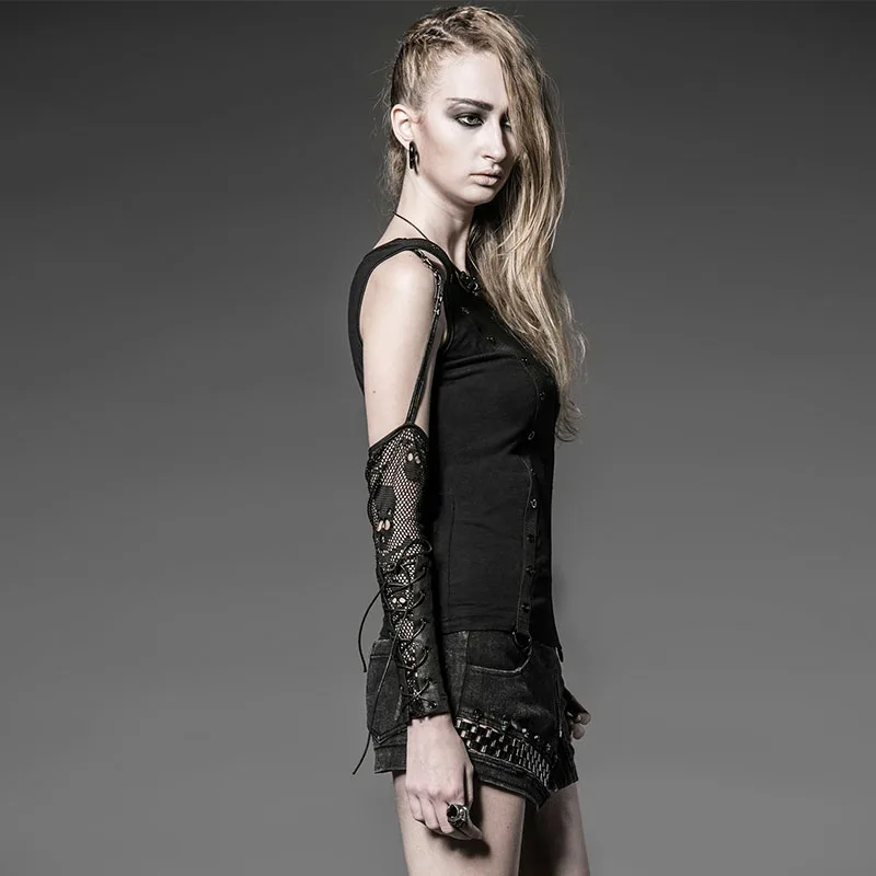Punk Rave Unipue Off Shoulder T-shirt New Fashion Vintage Gothic Cotton-Mesh Dark Women Shirts