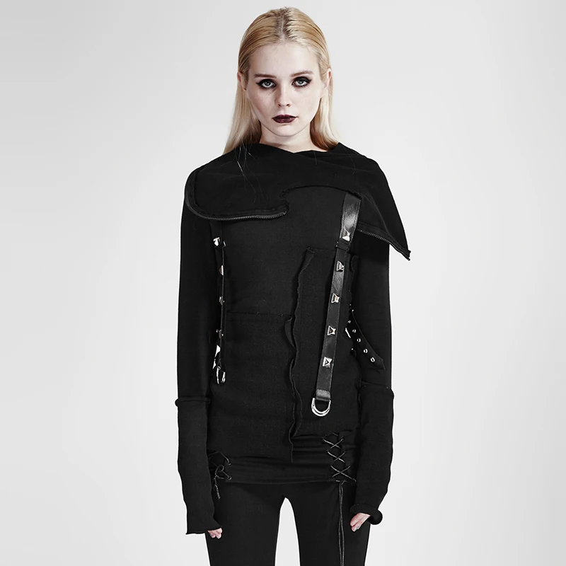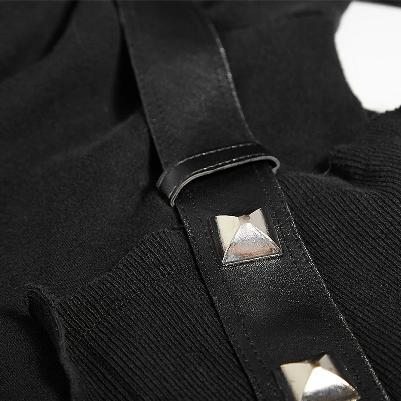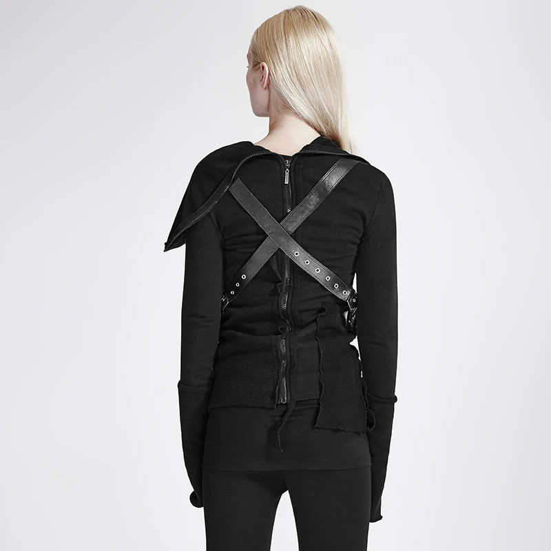 | Punk Street Decadent Thread Stitching More Layers Knitted Sweater With Hoodie Cross-Chain Zipper Casual Shirt Irregular Knit |