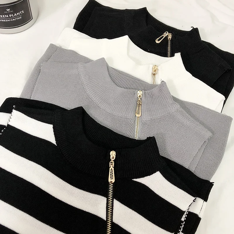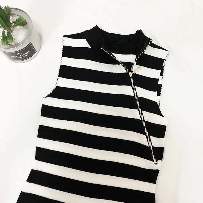 | 2019 Spring Summer top Women Sexy sleeveless Hanging Neck Strapless Small Strap Knited Vest Female temperament Zipper T-shirt |