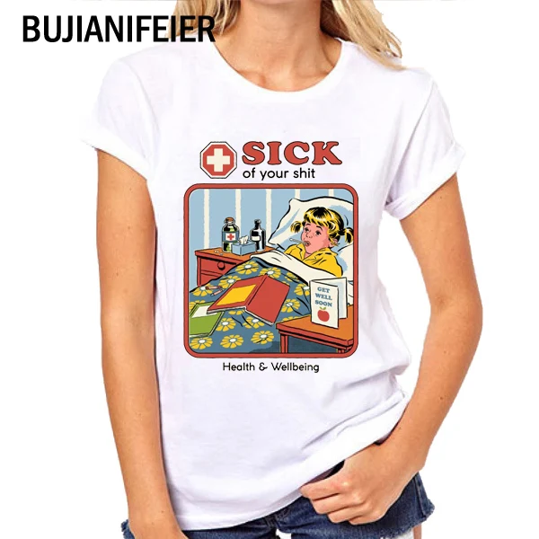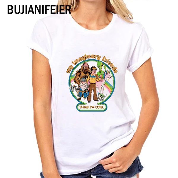 BUJIANIFEIER NEW SUMMER Funny Short sleeve Harajuku girls t shirts cartoon MODAL Print Tee