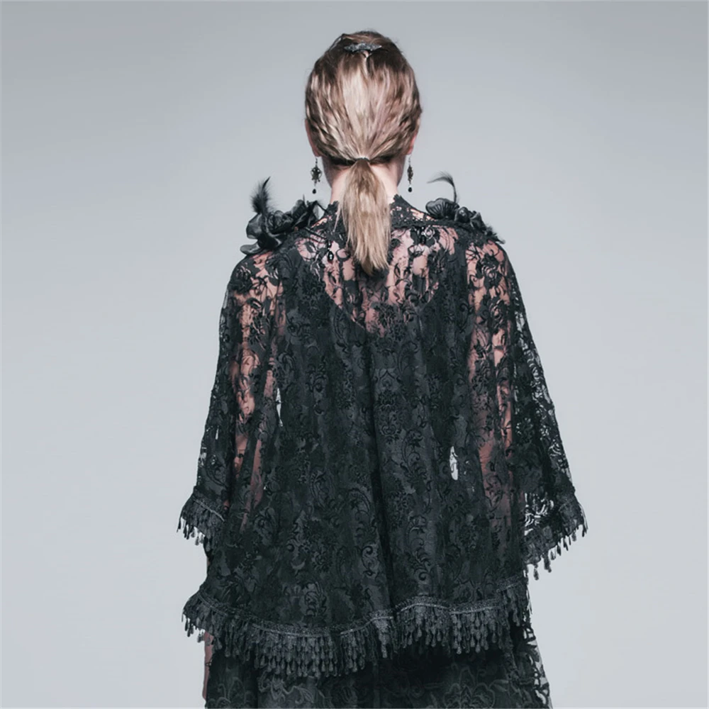 | Gothic Jacquard Knitting Vest Tank Tops Victorian Punk Women Lace Cappa Shawl Tops Summer Black Vest and Cape |