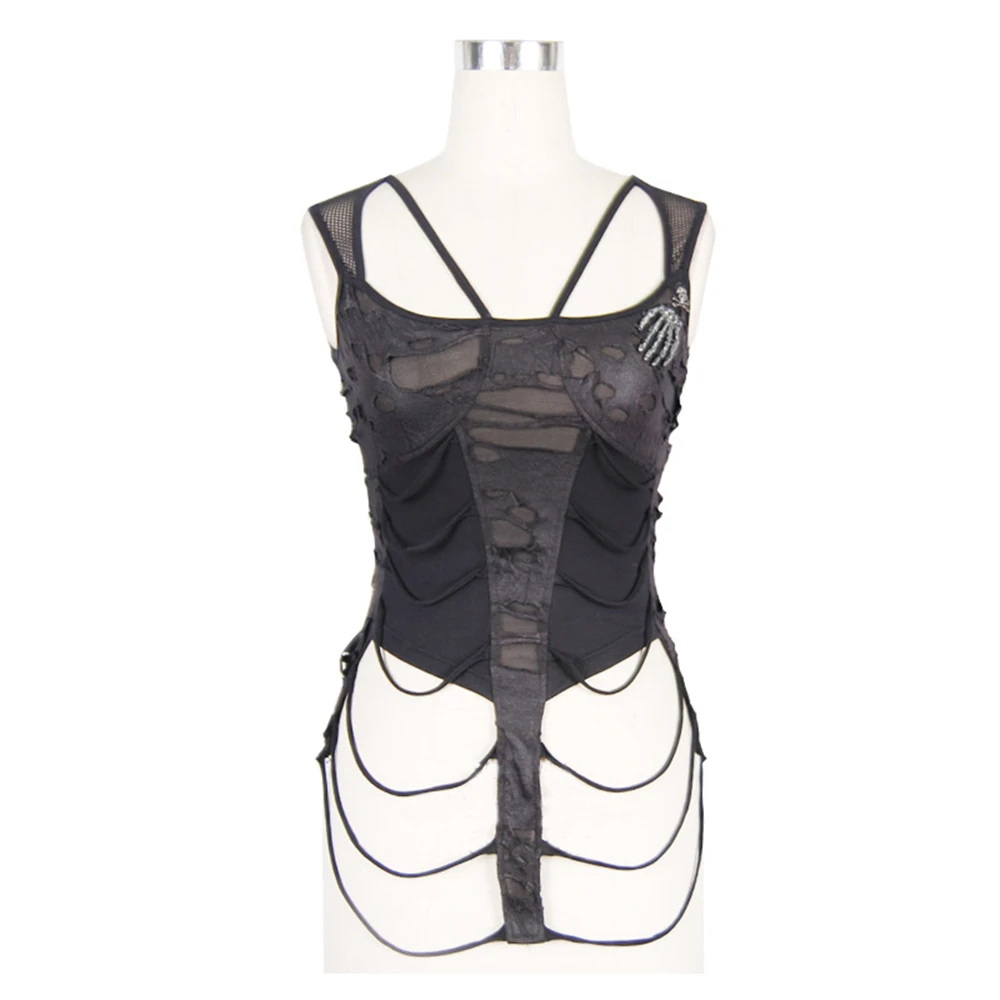 | The New Fashion Women Sleeveless Sexy Punk T-shirt Do Old Short Backless Pure Color Vest Female |