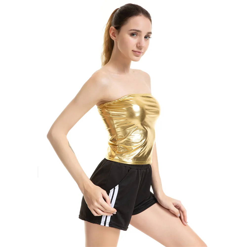 | underwear women clothes 2019 sexy top fashion PU Wrap chest Tight fitting One word collar strapless crop top women tops tank top |