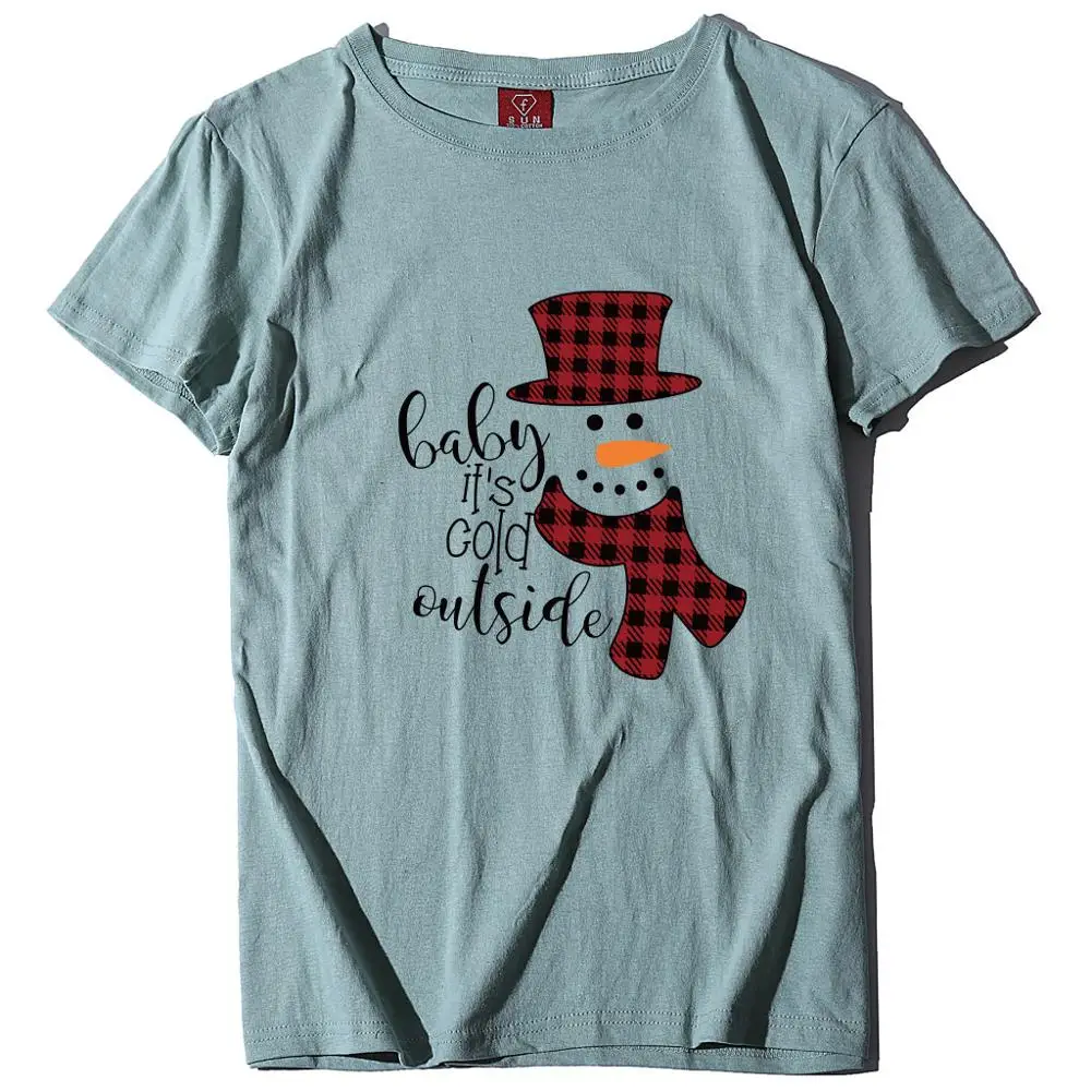 2020 T Shirt Women Cute graphic Baby its cold outside Printed Short Sleeve Fashion Casual Couple Tshirt 100% Cotton