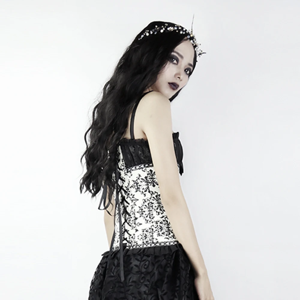 Gothic Black V Neck Women Vest Steampunk Close-fitting Sleveless Tank Tops Summer Printing Lace Casual VestBuy Now On Aliexpress