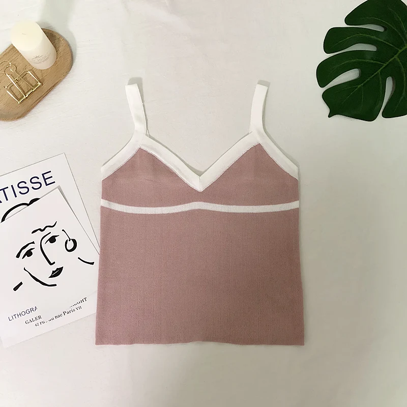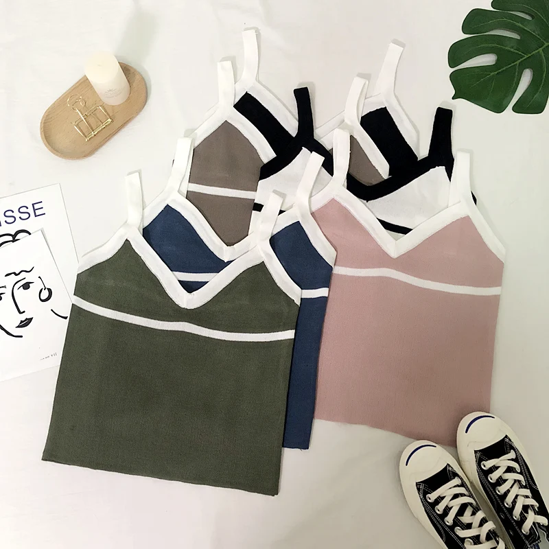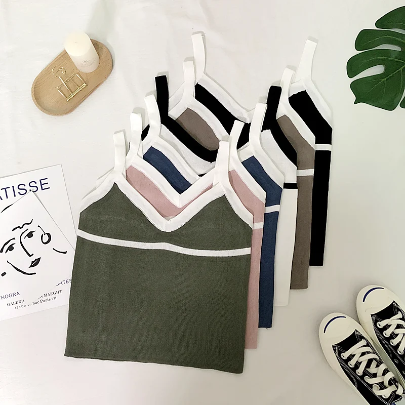 | Summer Women Fashion Slim Knitting Tank Crop Tops Female Bodycon Knitted Camisole Sleeveless Short Geometric T shirts G552 |
