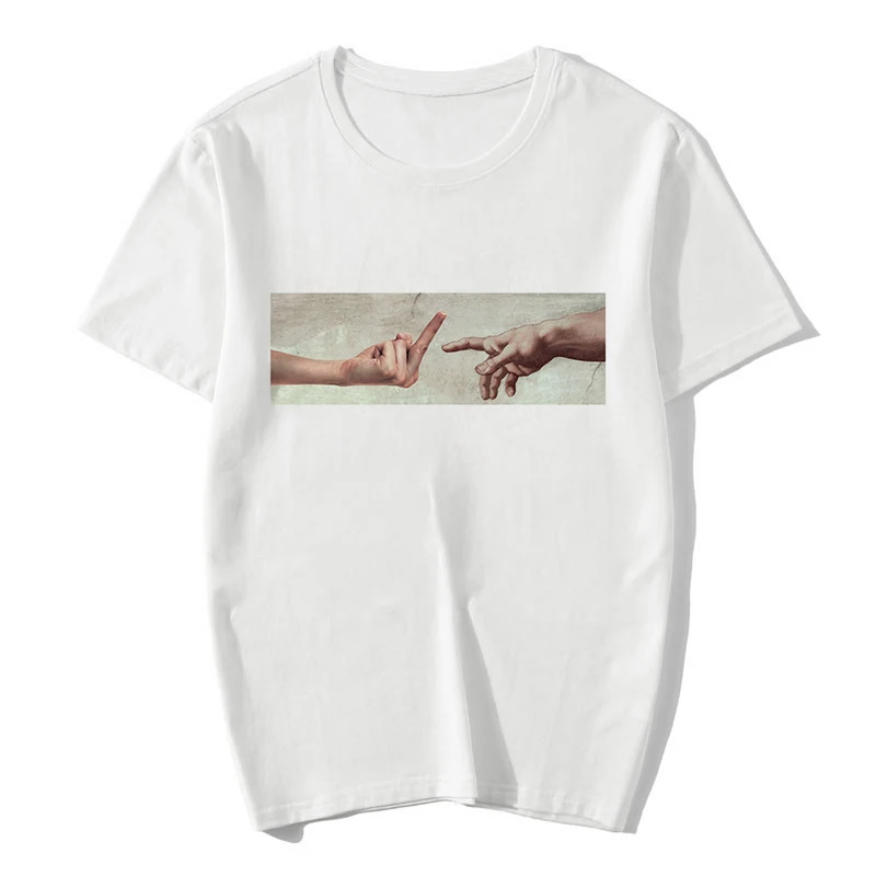2020 New Heaven Hell Print T-shirt Women MICHELANGELO Harajuku Gothic Vintage Short Sleeve Tops Tees Casual Couple 90S Clothing