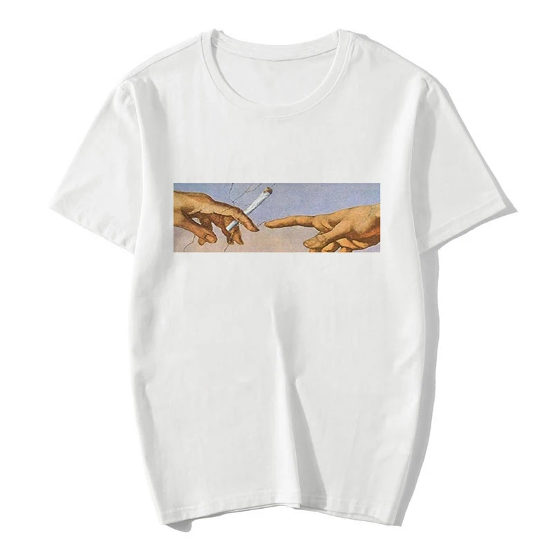 | 2020 New Heaven Hell Print T-shirt Women MICHELANGELO Harajuku Gothic Vintage Short Sleeve Tops Tees Casual Couple 90S Clothing |