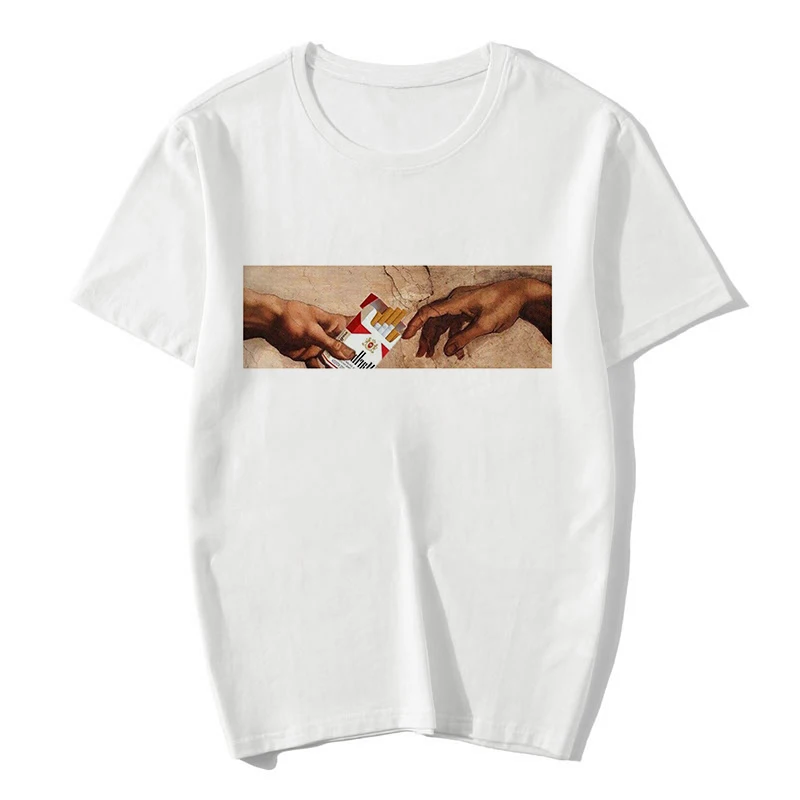 Best Price Comparison With 2020 New Heaven Hell Print T-shirt Women MICHELANGELO Harajuku Gothic Vintage Short Sleeve Tops Tees Casual Couple 90S Clothing