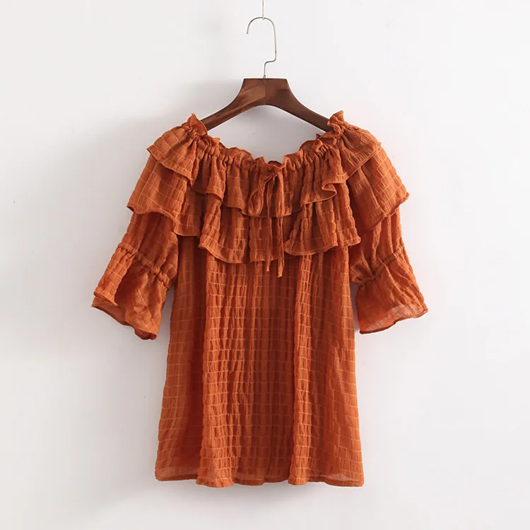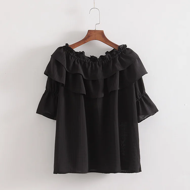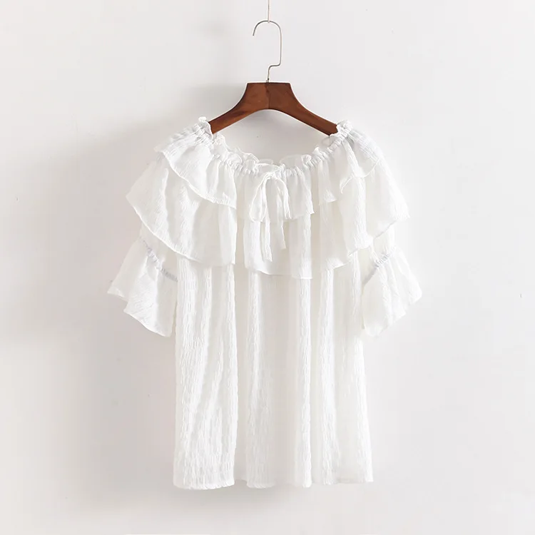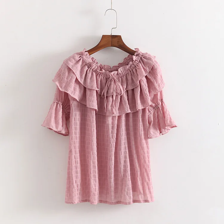 | 5 Colors Sweet Summer Tops Women Casual Ruffles Tops Plus Size 3 XL Lace Up Slash Neck Short Sleeve T-shirt KKFY4353 |