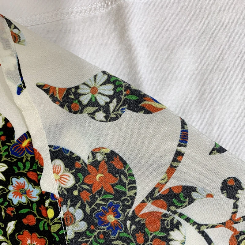 | SEQINYY Fashion T Shirt 2020 Summer Spring New Fashion Design Women Short Sleeve Silk Flowers Print White Cotton Top |