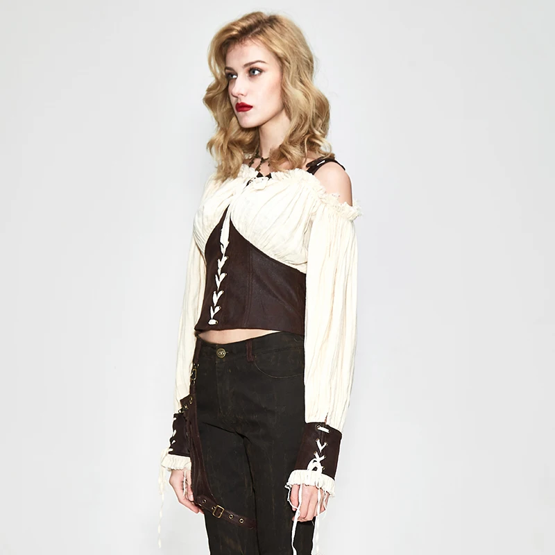 | Sexy Off One Shoulder Women Shirt Long Sleeve Patchwork Casual Blouse Lace Up Cotton 100% Slim Tops |