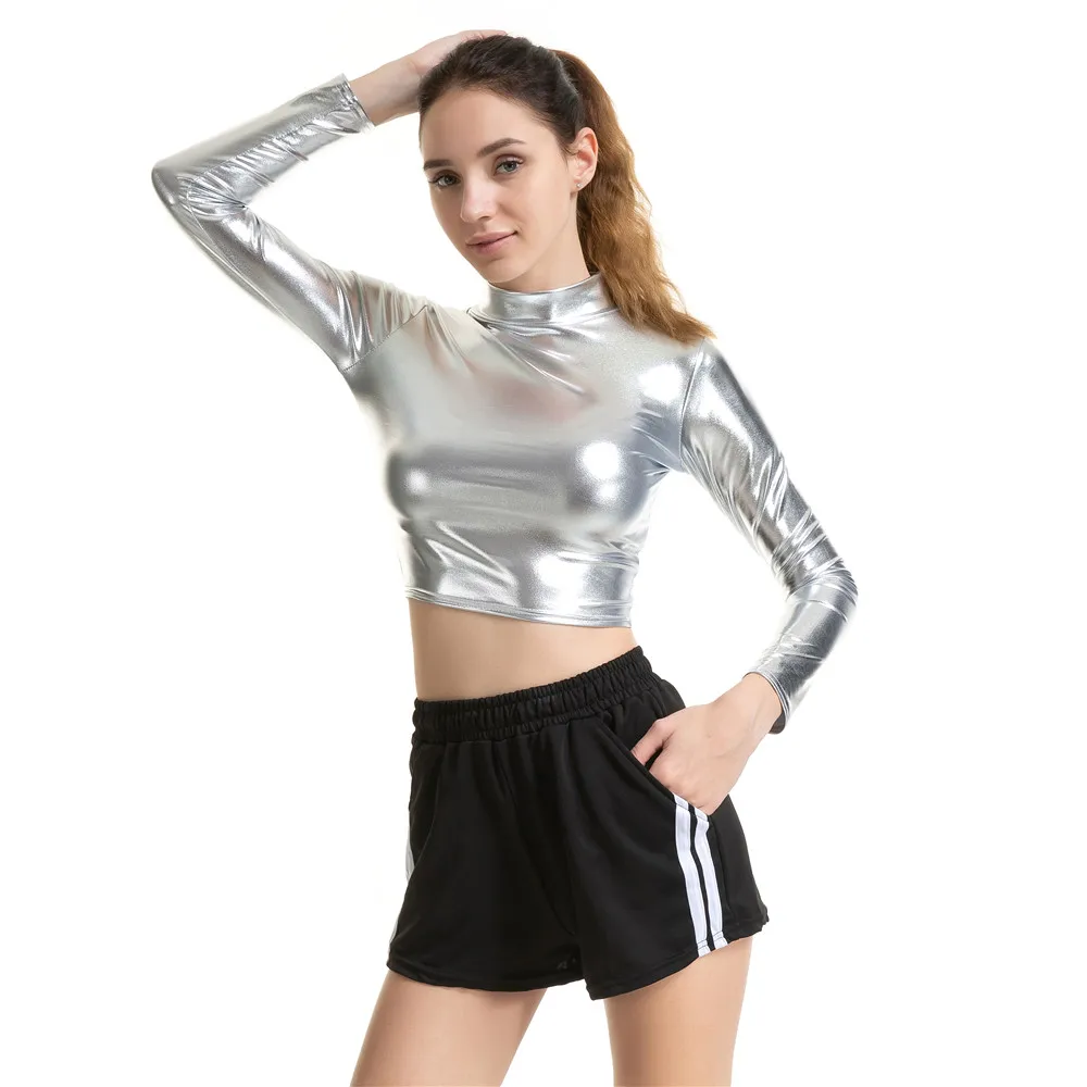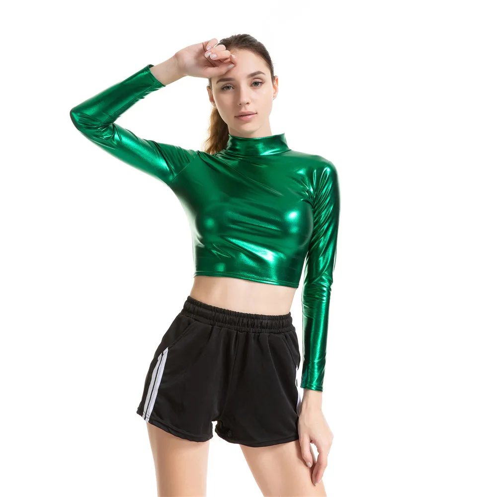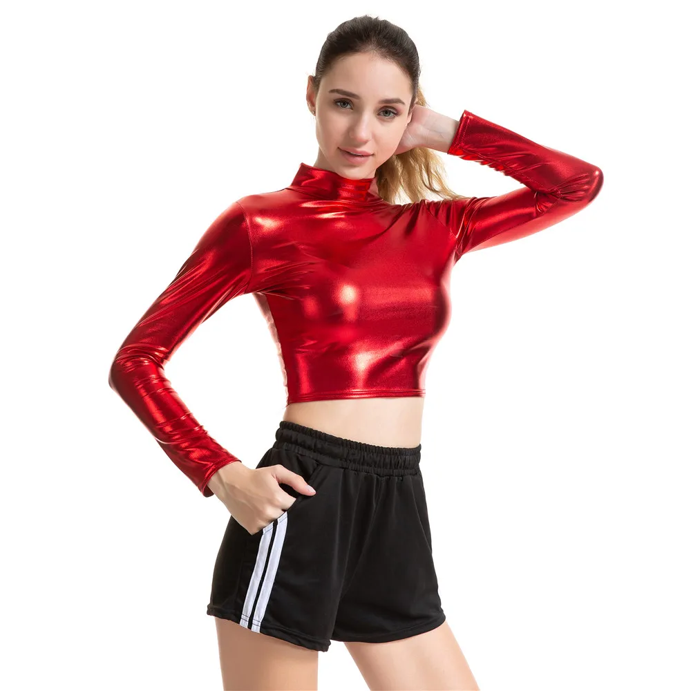 | underwear women 2019 new fashion PU Bright colors Long sleeves crop top women tops t shirt women tshirt harajuku camiseta mujer |