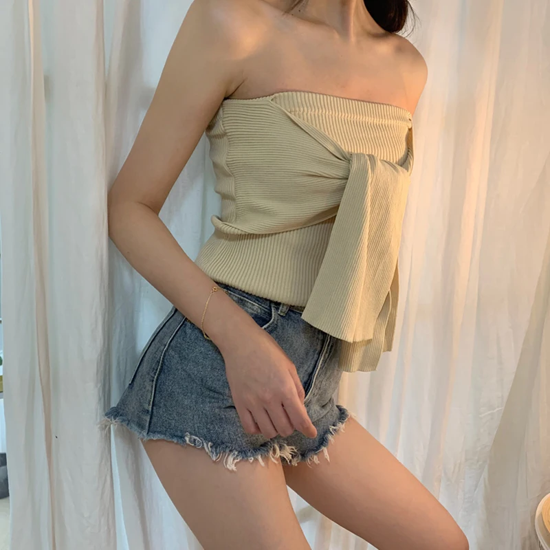 Womens Bow Tie Off Shoulder Sexy Crop Top Feminine Half Sleeve Lace Up Bandage Cropped Shirt Slim Short Tank Top TeesBuy Now On Aliexpress