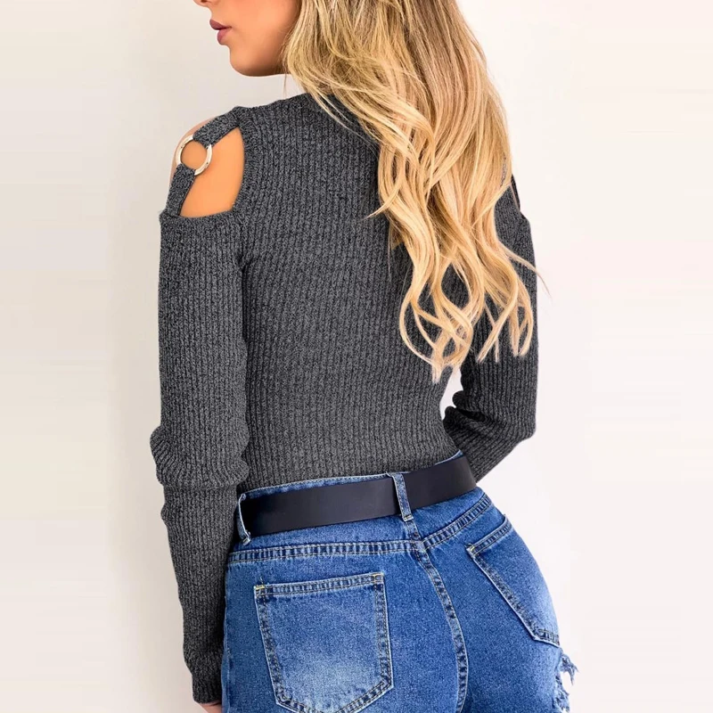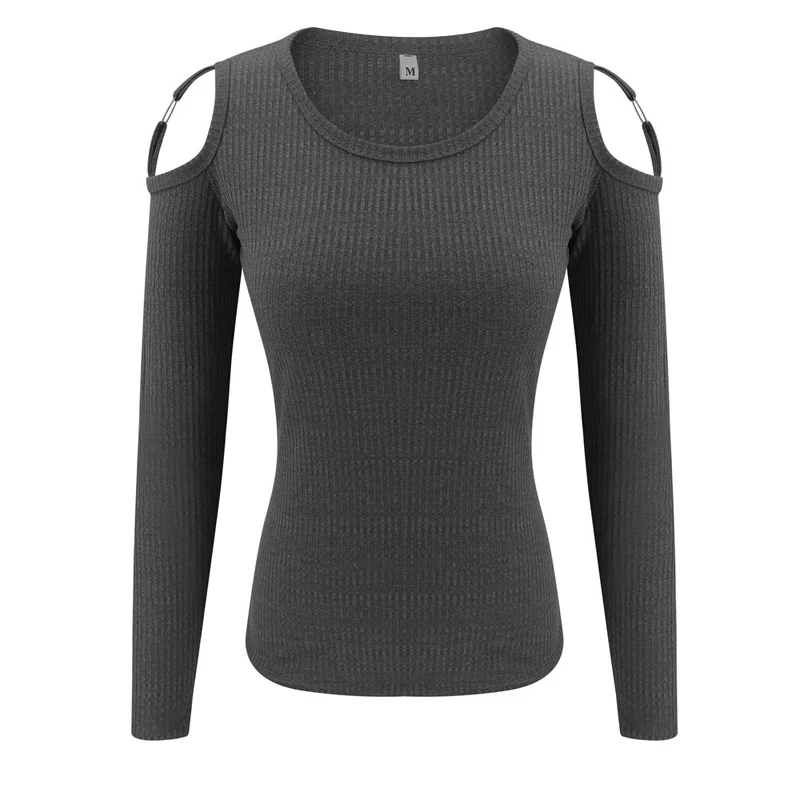 | Sexy T-shirt Women Autumn Knitted Long Sleeve Top Female Clothing Fashion Sexy Off-The-Shoulder Ladies Slim Tee Streetwear 2019 |