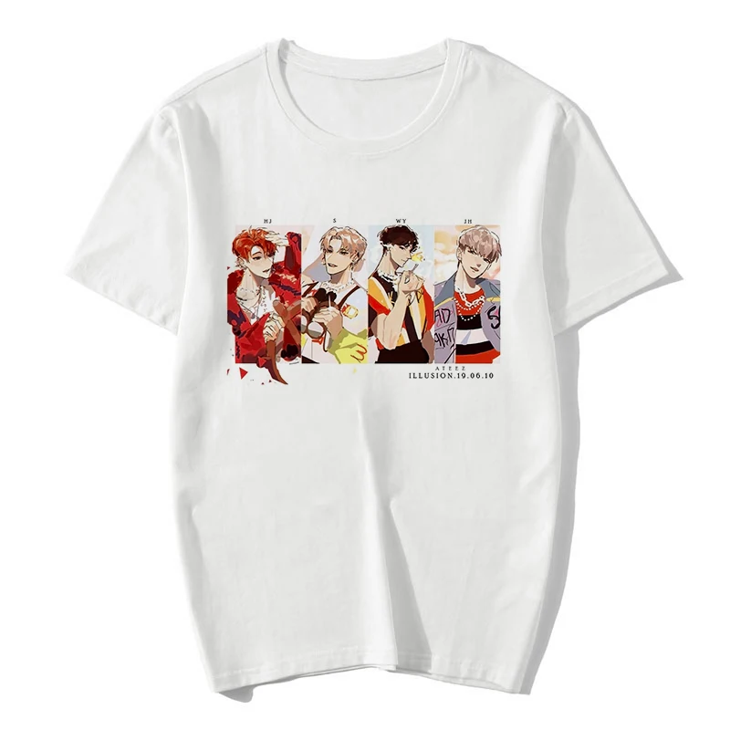 | ATEEZ Kpop Male Group Korean Style Kawaii Print White T Shirt Aesthetic Clothes Summer Women Short Sleeve Fashion E Girl Top |