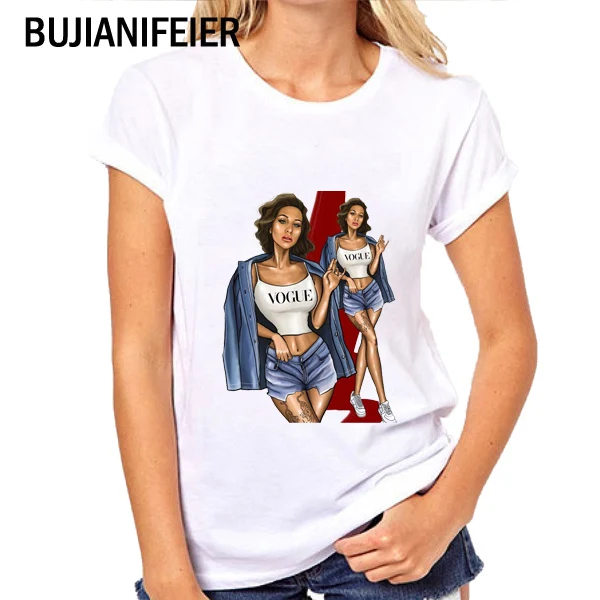 | BUJIANIFEIER 2019 new summer Womens T-Shirt Girl Print Stylish slim t-shirt Short Sleeve T-Shirt BJN159 |
