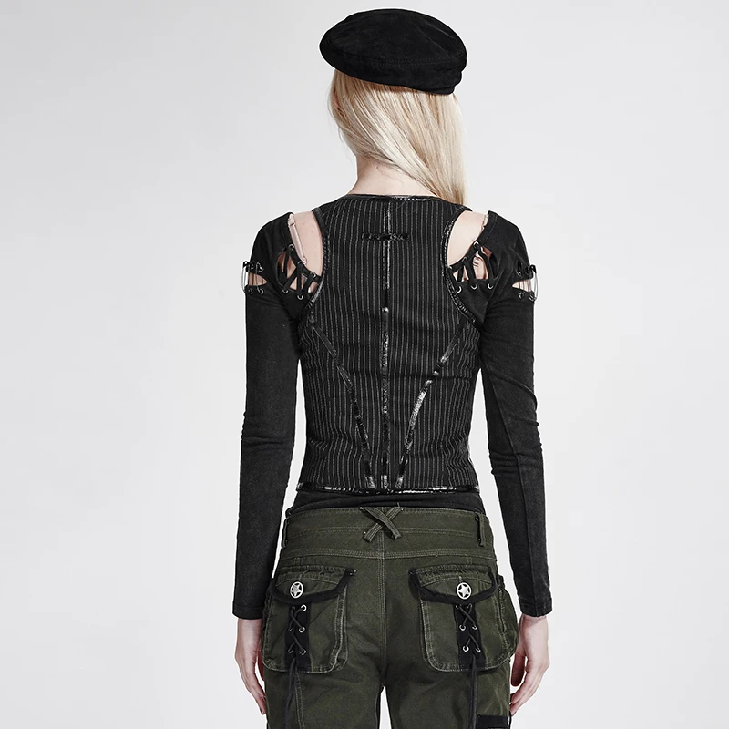Military Uniform U Shaped Women Waistcoat Fitted Vertical Stripes Vest Sleeveless Cotton Casual Waistcoat