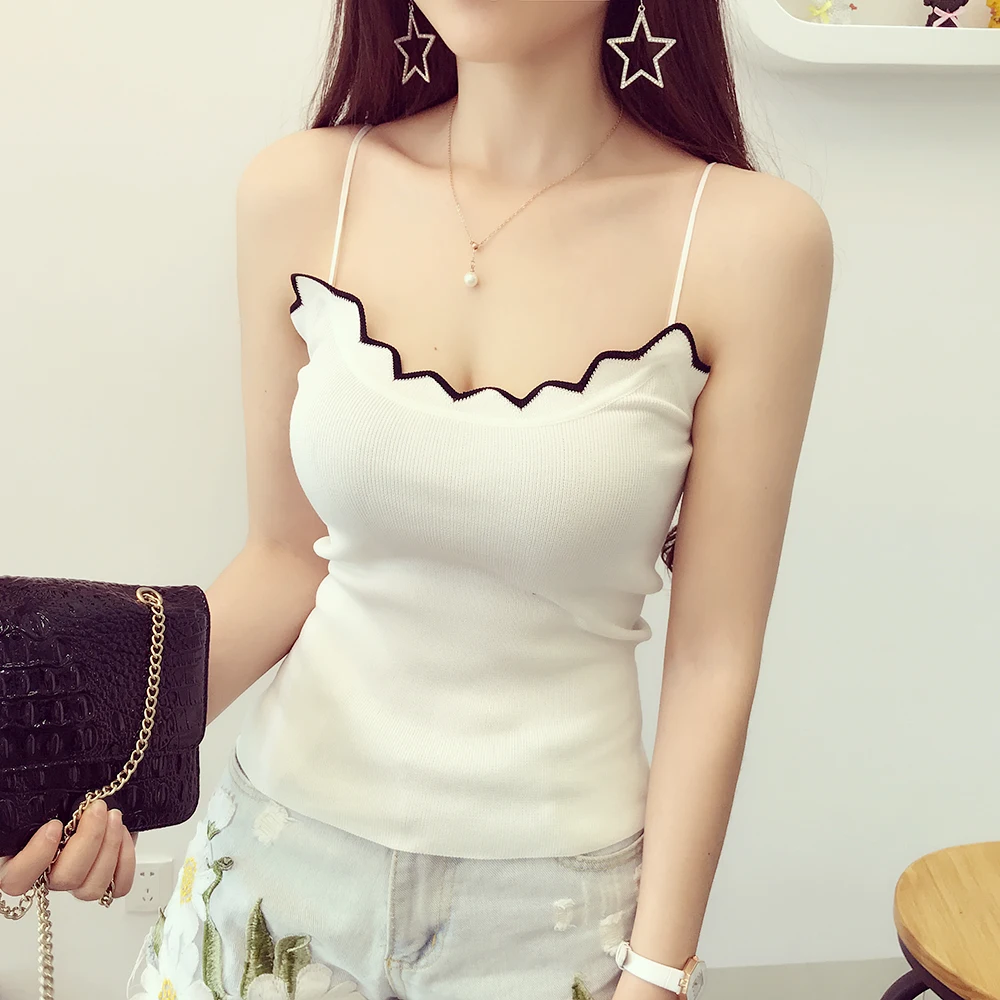 | 2019 New Korean Summer Contrast Wavy Edged Female Short Sleeveless T-Shirt Stretch Vest Slim Tank Top G60 |