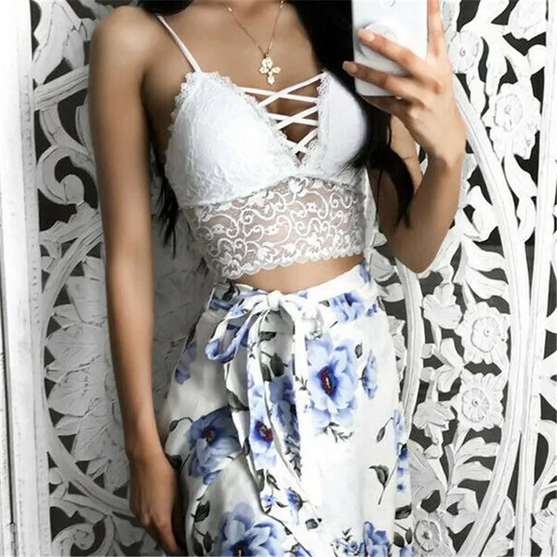 | Womens Sexy Lace Strappy Vest Fashionable New Bralet Top Ladies Plus Sizes Crop Tops Bandage Soild Color Sleeveless Bra Hot |