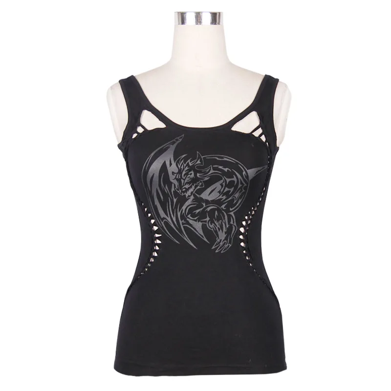 | Devil Brand Punk Gothic Pattern Black Printed Cotton Vest High Quality Cotton Fabric Women Casual Tank Top Fitness Clothes |