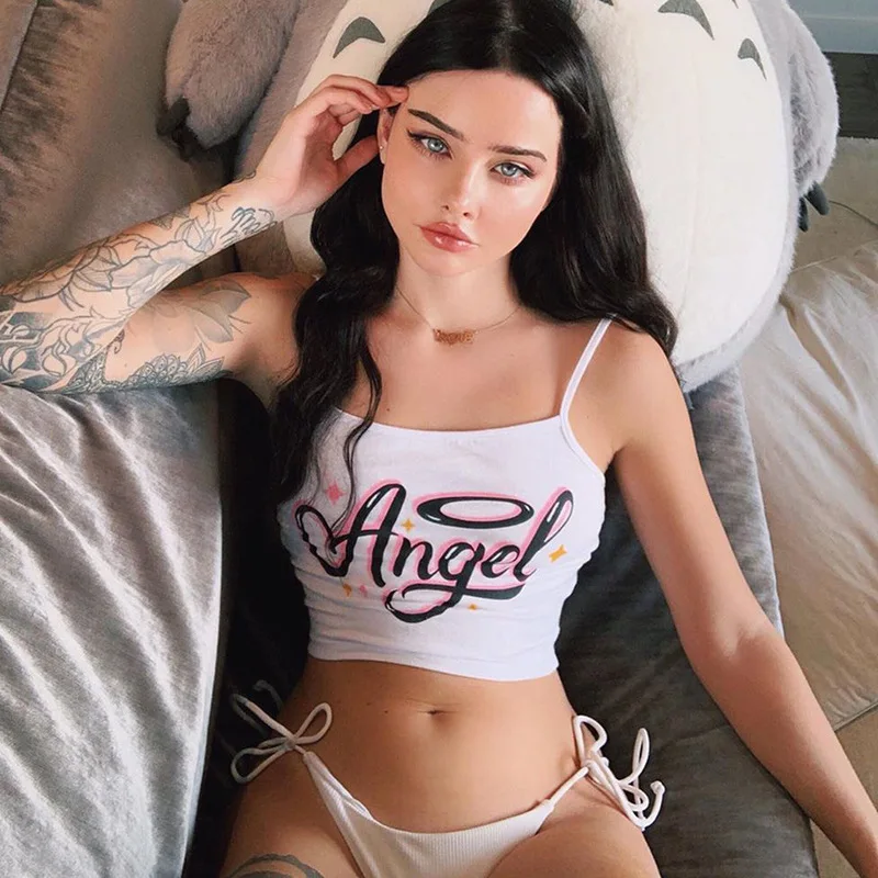| Sexy Letter Print Crop Top Spaghetti Straps Low Cut Slim Camisole Top Summer Women Fashion Backless Streetwear Tank Tops |