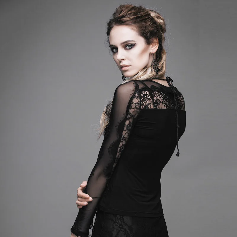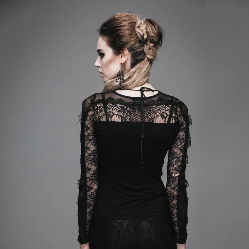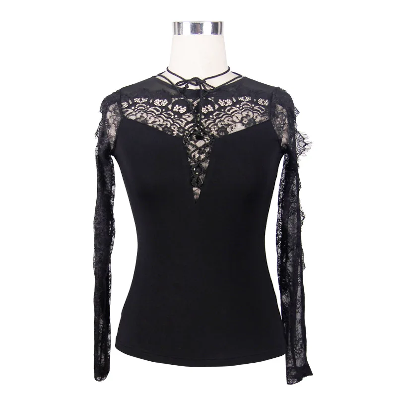 Punk Rave Gothic Splicing Gorgeous Charming Off-shoulder Lace Black Shirt With Rose Flocking Women T-shirtBuy Now On Aliexpress
