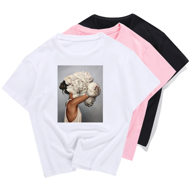 100% Cotton t shirt women Harajuku Aesthetics Tshirt Flowers Print Short Sleeve Tee Shirt Femme Tops Fashion Tumblr T-shirt