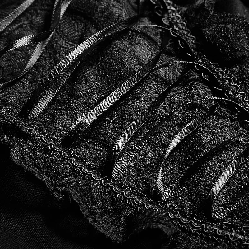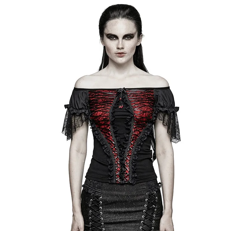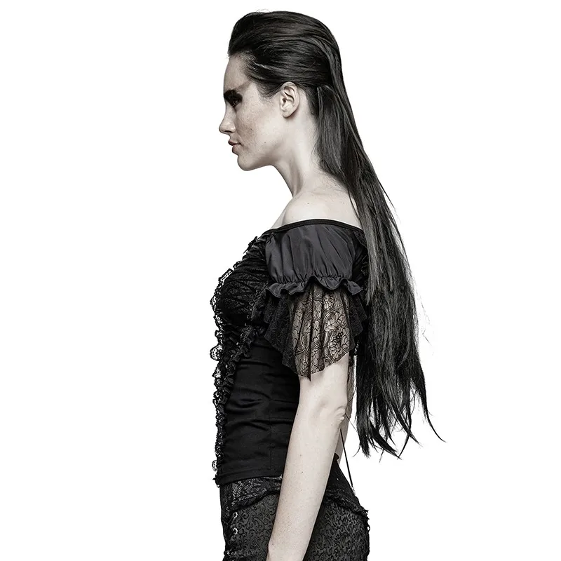 | Gothic Boat Neck Latin T-shirt Elegant Party Women Lace Shirts Summer Puff Sleeve Tight Ruffle Shirts Tops |