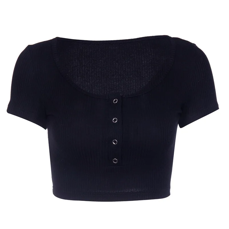 | Women Knitted T-shirt Short Sleeve O-Neck Pullovers Fashion Spring Basic Solid Color Button Pullover Sweatshirt Slim Fit Top |